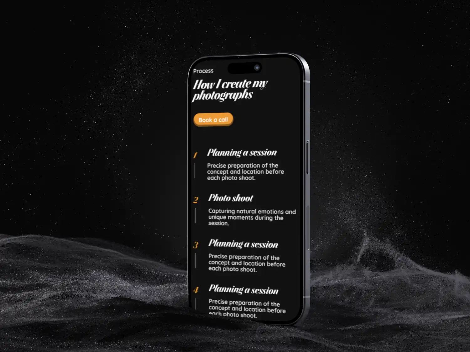 Projekt rozpocząłem od analizy stylu fotografa i grupy docelowej strony. Następnie opracowałem koncepcję układu, typografii i palety kolorystycznej, które harmonizowały z estetyką zdjęć. Zastosowałem minimalistyczny design, płynne animacje i intuicyjną nawigację, aby podkreślić zdjęcia i nadać stronie lekkości. Każdy element był testowany pod kątem spójności wizualnej i doświadczenia użytkownika.
